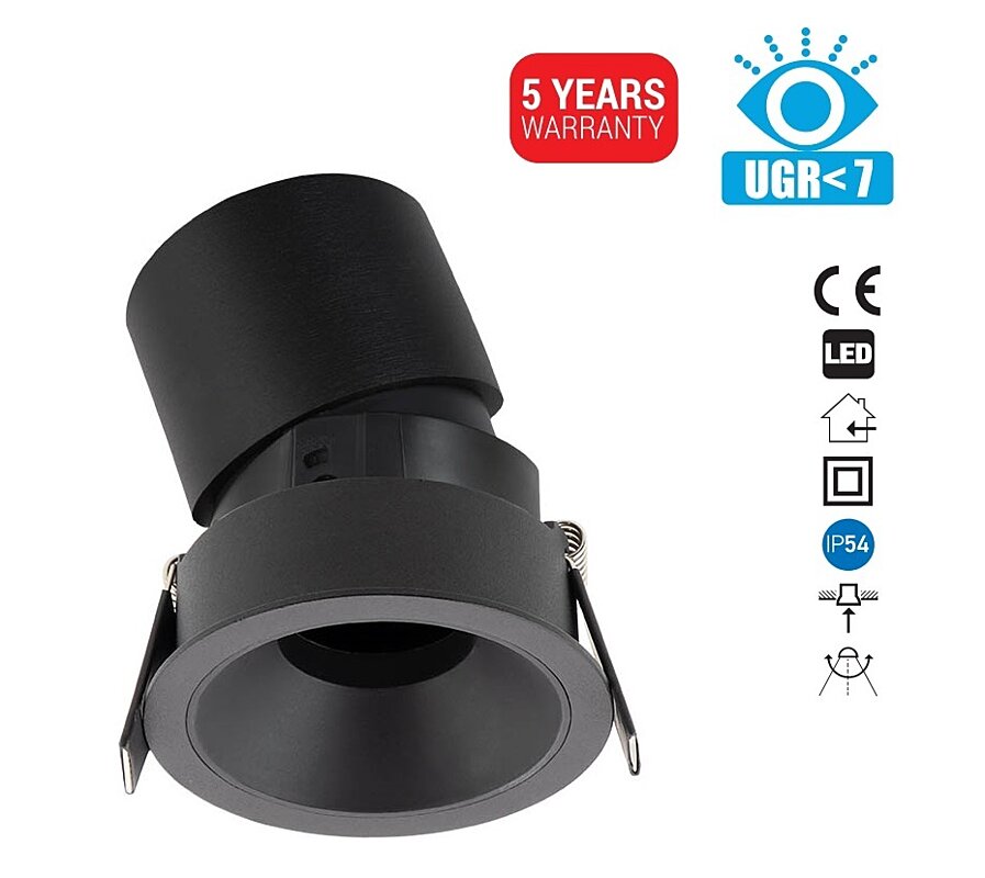 Zápustné 12W LED světlo XPIT PTD03WW SBK/SBK svítí teplou, bílou barvou 3000K. Zapuštěný rám z litého hliníku je lakovaný v elektrostatickém poli, černou barvou s pískovaným povrchem. Dekorativní kroužek je z polykarbonátu v černé barvě. Černý LED modul je vybaven praktickým náklonem 25°. LED BRIDGELUX modul je vyroben z litého hliníku, elektrostaticky lakovaný. Světlo je dodáváno včetně LED driveru. Vestavné světlo je určené pro montáž do sádrokartonu.