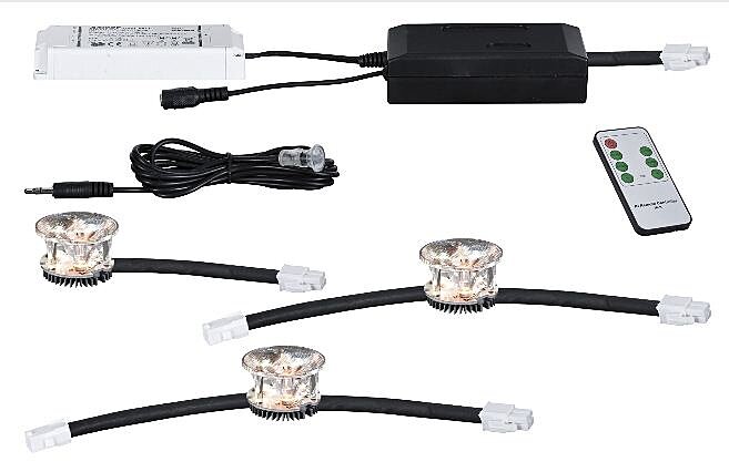 Vytvořte si jednoduše svoje osobité svítidlo. Stačí si k těmto LED zdrojům vybrat potřebné komponenty, které najdete v souvisejícím zboží. Třída ochrany 2. Dodává v již tradičně vysoké kvalitě německý výrobce Paulmann. Tento set je vybaven dálkovým ovladačem - možnost nastavení bílého světla od hřejivého bílého až po jasné bílé. Součástí balení je transformátor s výkonem 15VA.