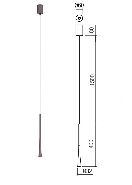 Závěsné světlo vyniká svým úzkým a dlouhým tělem. Stínidlo je 40cm dlouhé a v průměru má 3,2cm. 01-4063 je vyrobené z kovu v barvě saténově kávové. Světlo svítí 6W teplou, bílou barvou 3000K.