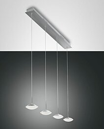 Závěsné svítidlo pochází z dílny italského výrobce Fabas. Na kulaté základně jsou zavěšená tři stínítka. Zabudované LED diody svítí teplou bílou barvou o síle 2260 lumenů. Lustr je vyroben z kovu a má povrchovou úpravu kartáčovaného hliníku.