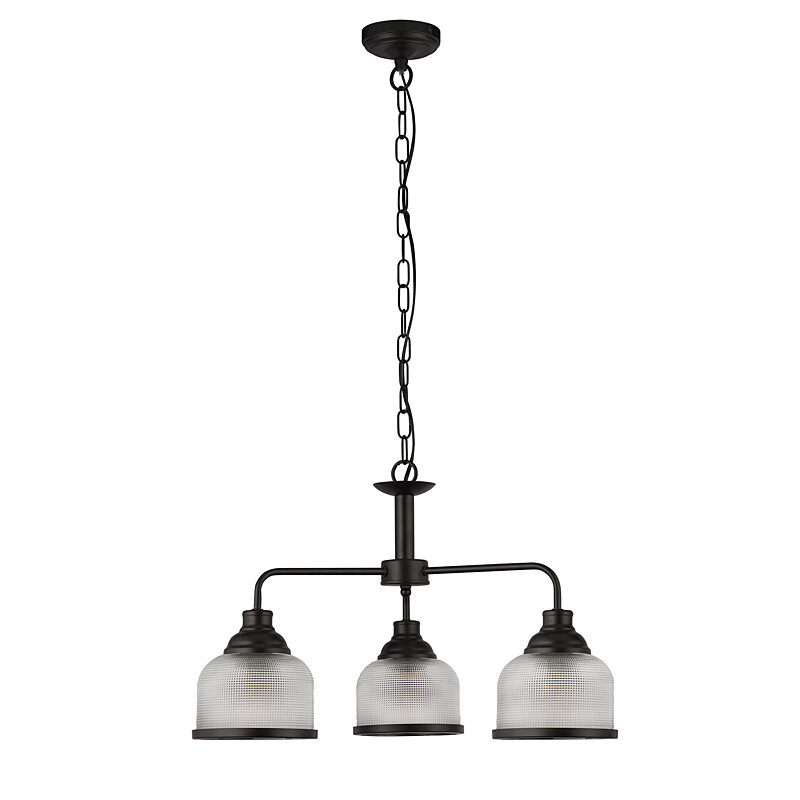 kompatibilní závit(patice) E27Závěsné svítidlo z řady Highworth 1683-3BK je vybaveno třemi skleněnými stínidly s paticemi E27 o maximálním výkonu 60W. Světelný zdroj není součástí balení. Svítidlo je vyrobeno z kovu, lakováno do černé matné barvy. Difuzor je vyroben ze skla se čtvercovými prvky. Délku závěsu lze libovolně zkrátit. Hodnota stupně krytí je IP20.