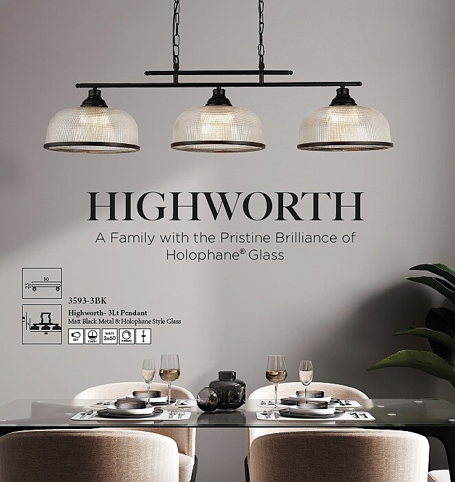 kompatibilní závit(patice) E27Závěsné svítidlo z řady Highworth je vybaveno třemi skleněnými stínidly s paticemi E27 o maximálním výkonu 60W. Světelný zdroj není součástí balení. Svítidlo je vyrobeno z kovu, lakováno do barvy antické mosazi. Difuzor je vyroben ze skla se čtvercovými prvky. Délku závěsu lze libovolně zkrátit. Hodnota stupně krytí je IP20, hmotnost svítidla 7,85kg.