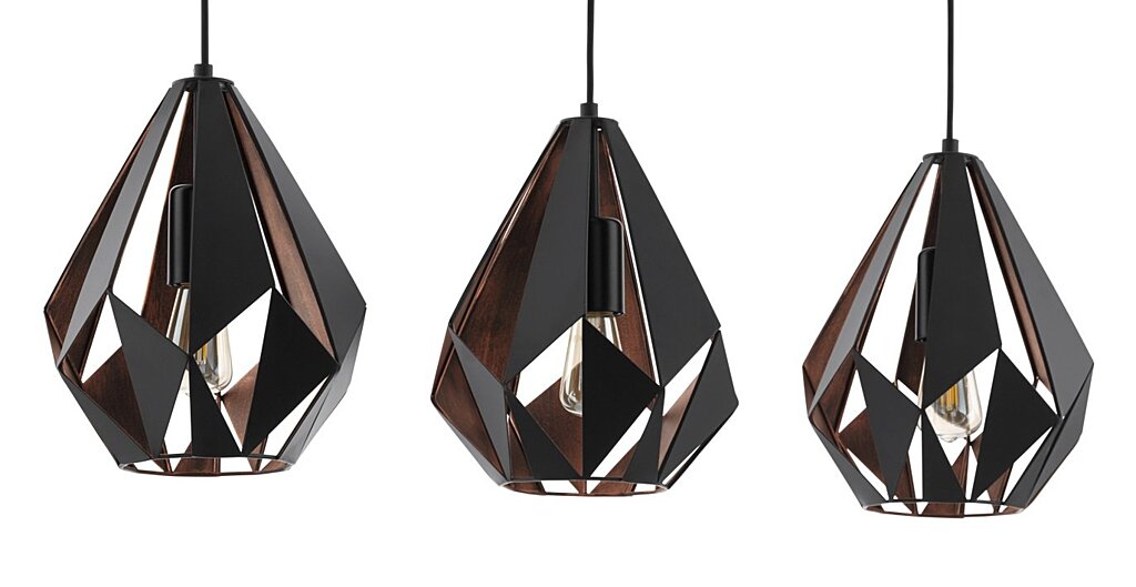 Závěsné svítidlo z řady CARLTON 1 vybaveno třemi paticemi E27 o maximálním výkonu 3x60W. Světelný droj není součástí balení. Svítidlo je vyrobeno z oceli, lakováno do černé a měděné barvy. Váha svítidla je 3,85kg, hodnota stupně krytí je IP20.