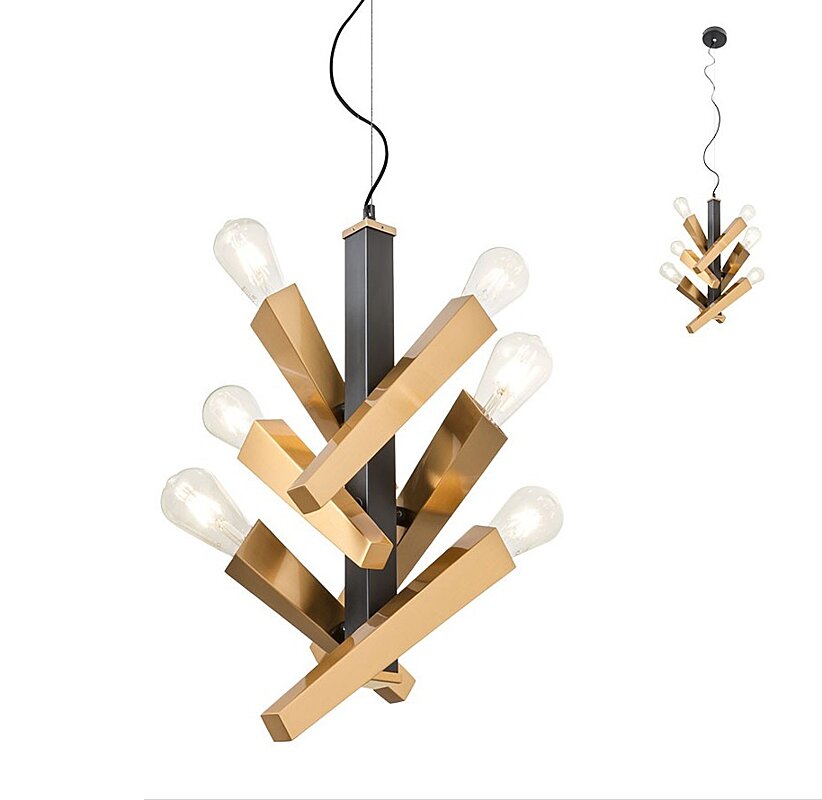 Interiérové závěsné svítidlo se šesti paticemi E27 o max. výkonu 42W. Konstrukce je vyrobena z kovu lakovaná do matné černé barvy a starožitné mosazi. Ke svítidlu se skvěle hodí Vintage žárovky.
