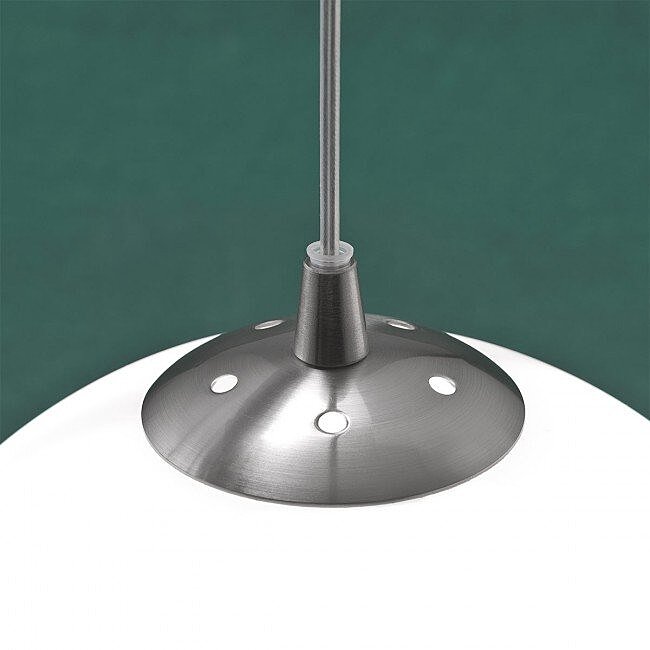 Závěsné interiérové svítidlo vybaveno paticí E27 o maximálním výkonu 42W. Konstrukce je vyrobena z kovu, povrchová úprava je v saténovém niklu. Difuzor je vyroben z opálového skla. Hodnota stupně krytí je IP20. Světelný zdroj není součástí balení.